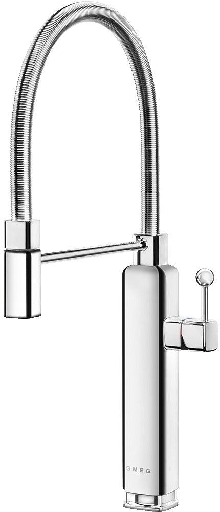 Смеситель относится к основной коллекции SMEG, уже успевшей отлично зарекомендовать себя на рынке. Его детали очень тщательно подогнаны, так что устройство будет служить очень долго. Из других достоинств упоминания заслуживают возможность пристенной либо островной установки. Но главные преимущества откроются только при использовании. У модели есть функции Energy Saving Cartridge (когда рычаг в центральном положении, течет не теплая, а холодная вода) и Water Saving Cartridge — технология снижения потребления воды за счет торможения рычага в среднем положении. Аэратор на конце излива решает две задачи: позволяет экономить воду и уменьшает ее разбрызгивание.