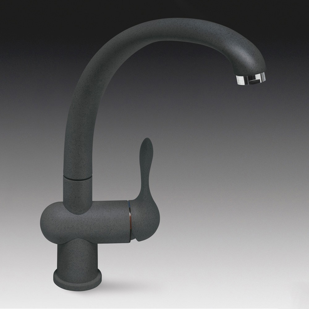 Этот помощник на кухне родом из Италии. Отличительной особенностью модели является неповторимый дизайн и практичность в применения. Мягкие, гладкие формы без присутствия острых углов и граней выполнены в цвете черного камня (антрацит). Рычаг управления смесителем выполнен в цвете основного корпуса, имеет тонкие, аккуратные линии и очень приятно лежит в руке. Поворотный механизм излива на 360 градусов делает возможной установку устройства при любом расположении мойки на столешнице (слева, справа, в углу и т.д.).