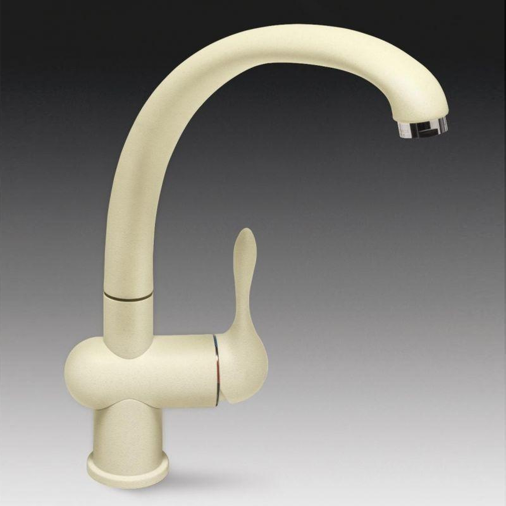 Изысканные формы, элегантный дизайн, нежный мягкий кремовый цвет этого смесителя делают его неотъемлемой частью кухни как при наличии дизайнерского ремонта, так и при готовых решениях. Многие пользователи пытаются подобрать смеситель под мойку и только, но данная модель способна дополнить оформление помещения в целом. Смеситель имеет прочное, надежное покрытие из искусственного камня, способное простить владельцу многое и сохранять первозданный вид без сколов и царапин многие годы.