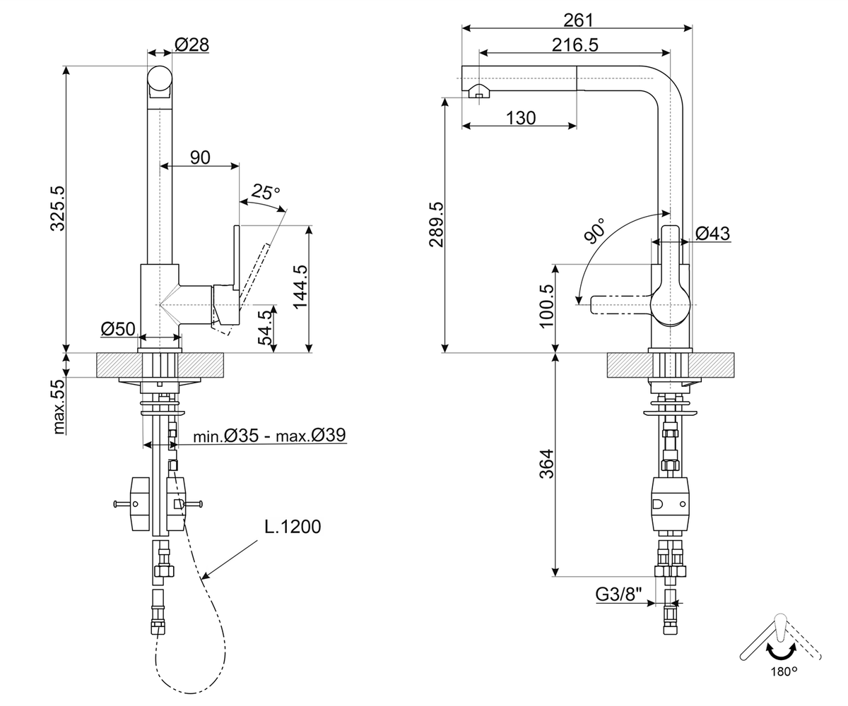 Рычаг дает возможность одной рукой настраивать температуру и мощность струи. Встроенный аэратор уменьшает потребление воды, осуществляя ее смешивание с воздухом. Уникальная технология Energy Saving Cartridge подает только холодную воду, когда рычаг находится по центру. Благодаря функции Water Saving Cartridge на полпути рычага подается только 50 % водной струи, чего обычно хватает в процессе готовки. Выдвижной излив обеспечивает подачу воды в нужное место раковины. Смеситель высотой 32,55 см с матовой отделкой станет стильным и функциональным дополнением кухонного интерьера.