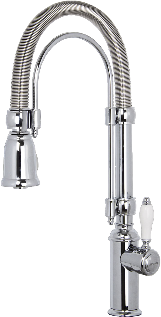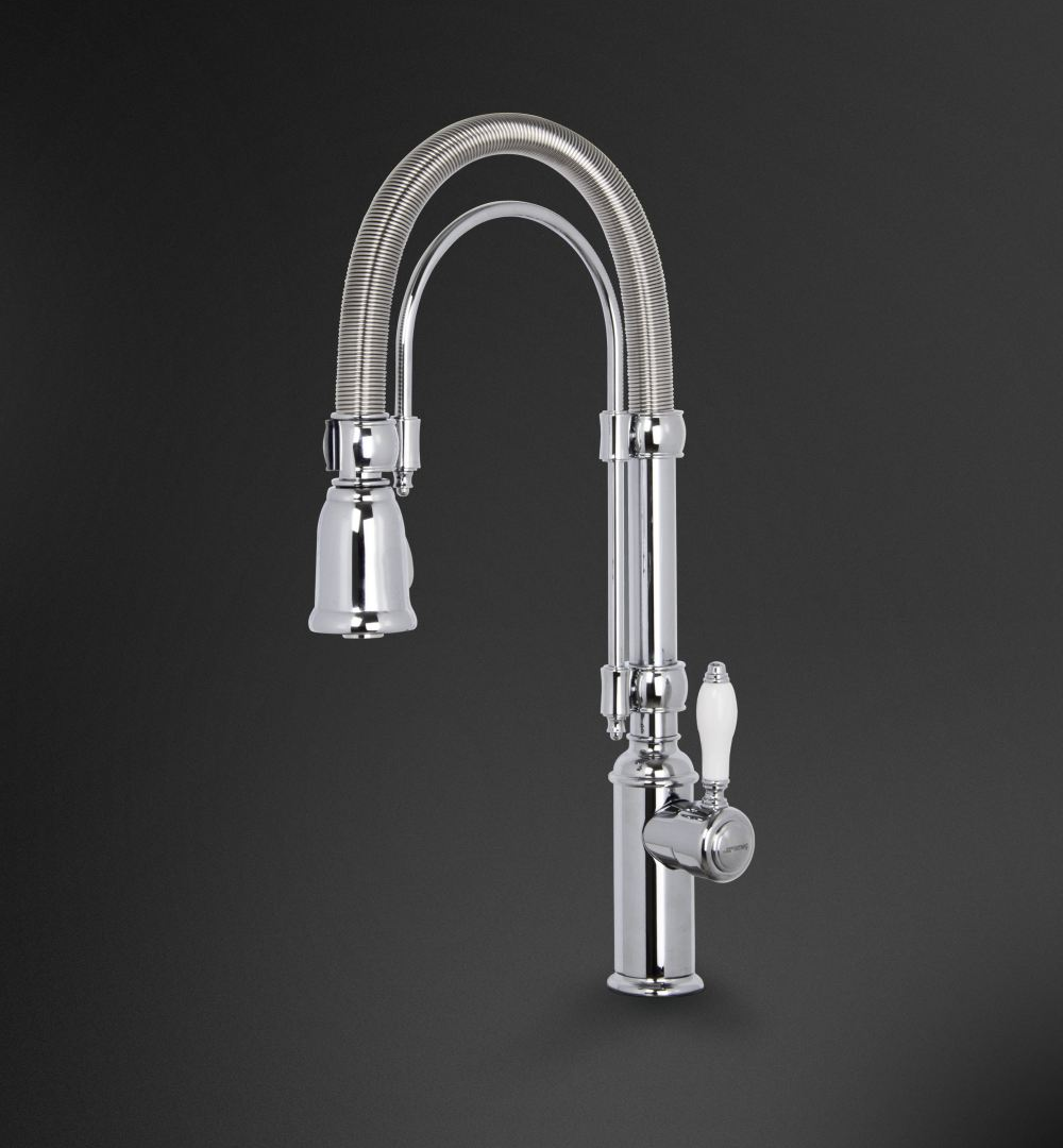 Если вы ищете смеситель, который не только обеспечит подачу воды, но и порадует дополнительными функциями, обратите внимание на эту модель. Смеситель имеет оригинальный дизайн. Его хромированный корпус особенно хорошо подойдет для стилей хай-тек и лофт. У модели есть выдвижная лейка, работающая в двух режимах. Она может обслуживать мойки с двумя или даже тремя чашами. Вам будет гораздо проще наполнять высокую посуду — ее можно даже не ставить в раковину.