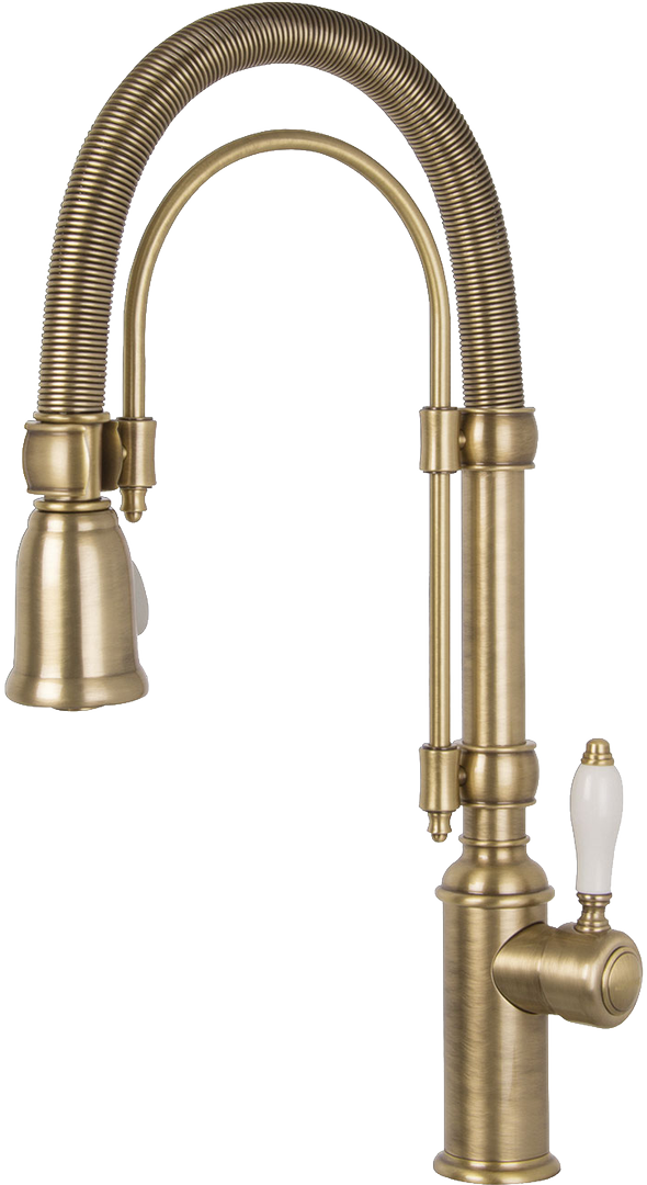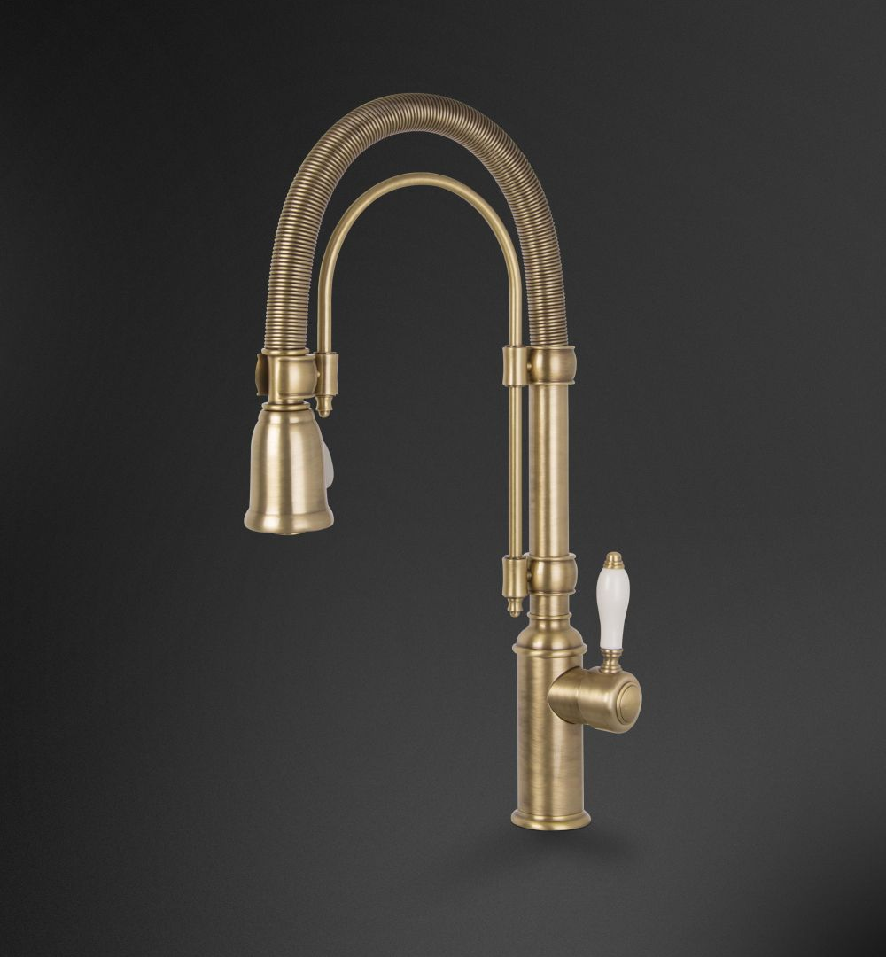 Этот смеситель в стиле ретро имеет оригинальный изогнутый излив и изящный фарфоровый рычаг. Она будет хорошо смотреться в интерьерах, стилизованных под старину. Корпус модели покрывает прочное PVD напыление цвета Латунь. Латунное покрытие не тускнеет со временем, так что ваш смеситель будет великолепно выглядеть даже через десять лет.