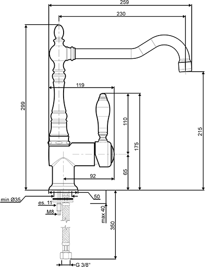 Красивый однорычажный смеситель в ретро-стиле подойдет всем любителям изысканных форм. Модель выполнена в популярном стиле ретро и может использоваться в интерьерах, стилизованных под старину. Оригинальный корпус высотой 29,9 см с причудливо изогнутым поворотным изливом будет отлично сочетаться со светлыми или темными мойками из искусственного камня. Покрытие цвета латуни придает модели изысканный вид. Оно наносится в условиях вакуума, потому получается абсолютно гладким и очень прочным. Смеситель останется таким же красивым на долгие годы, если только вы не будете использовать при чистке абразивные материалы.