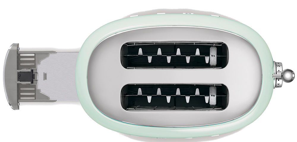 Тостер отличается элегантным дизайном, выполненным в ретро стилистике 50х годов, а хромированные элементы и пастельно зеленый цвет гарантировано создадут яркий акцент в оформлении вашего кухонного интерьера. Сам корпус изготовлен из высококачественной нержавеющей стали, а внутренние поверхности из термостойкого металла.