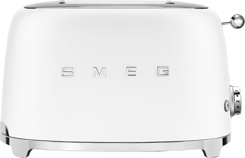 Стильный тостер белого цвета выпускается в рамках серии 50's Retro Style итальянского бренда SMEG. Компактный тостер может стать украшением как классической, так и современной кухни. Благодаря использованию округлых форм и хромированной фурнитуры устройство отлично гармонирует с другой бытовой техникой из коллекции. Сам же корпус изготавливается из металла и покрывается матовым термоформируемым полимером белого цвета. На передней части корпуса располагается стильный логотип компании SMEG.