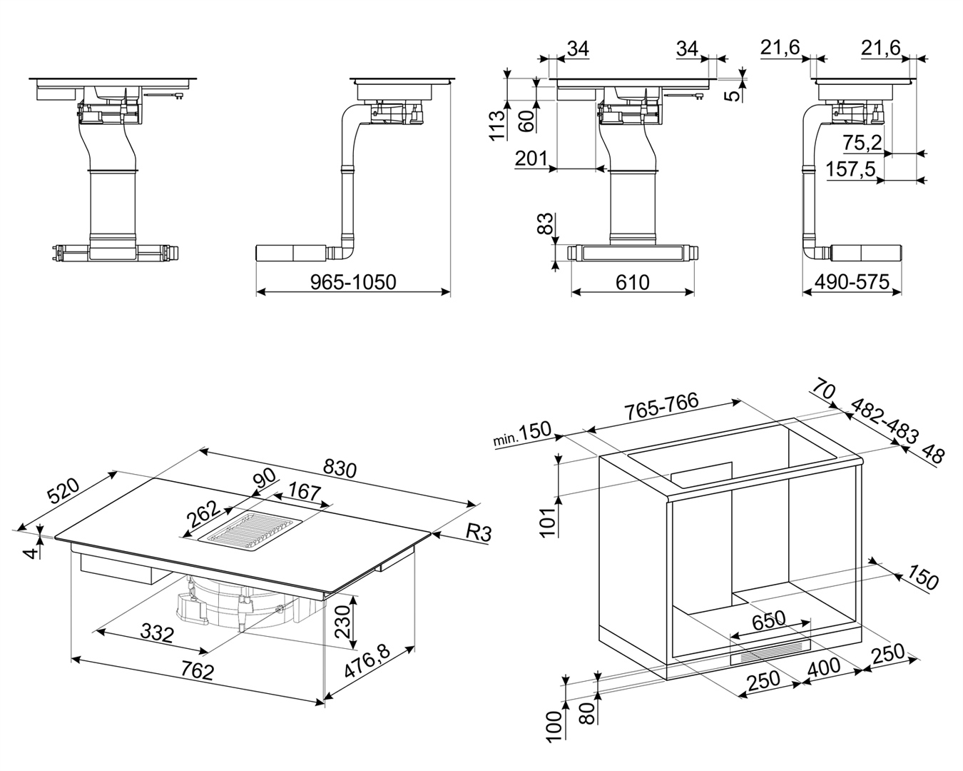 Варочная панель Smeg HOBD482D со встроенной вытяжкой