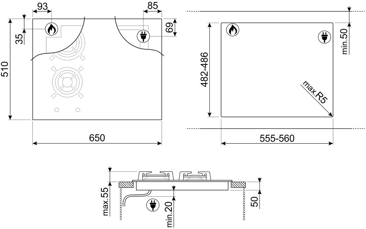 Варочная панель имеет комбинированную панель управления: поворотные переключатели для газа и сенсоры для индукции (9 уровней мощности). Электроподжиг избавляет от необходимости использовать зажигалку. Газ-контроль надежно защищает от утечки голубого топлива. Таймер позволяет точно контролировать время приготовления блюда. Индукционные зоны нагрева могут объединяться в одну (функция Мост). Поддерживается много дополнительных опций, например: индикация остаточного тепла, режим ограничения мощности, блокировка управления, защитное отключение при перегреве.