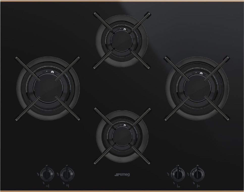 Стильная варочная поверхность черного цвета с четырьмя газовыми конфорками — отличное решение для современной кухни. Модель входит в популярную серию Dolce Stil Novo. У нее изящные поворотные переключатели, надежные чугунные решетки и медный профиль, который не позволит технике полностью слиться со столешницей. Качественная стеклокерамика во время работы горелок превращается в зеркало, так что техника выглядит очень нарядно.