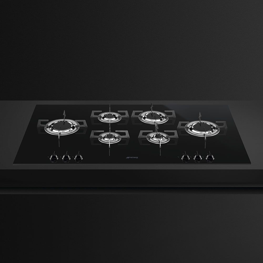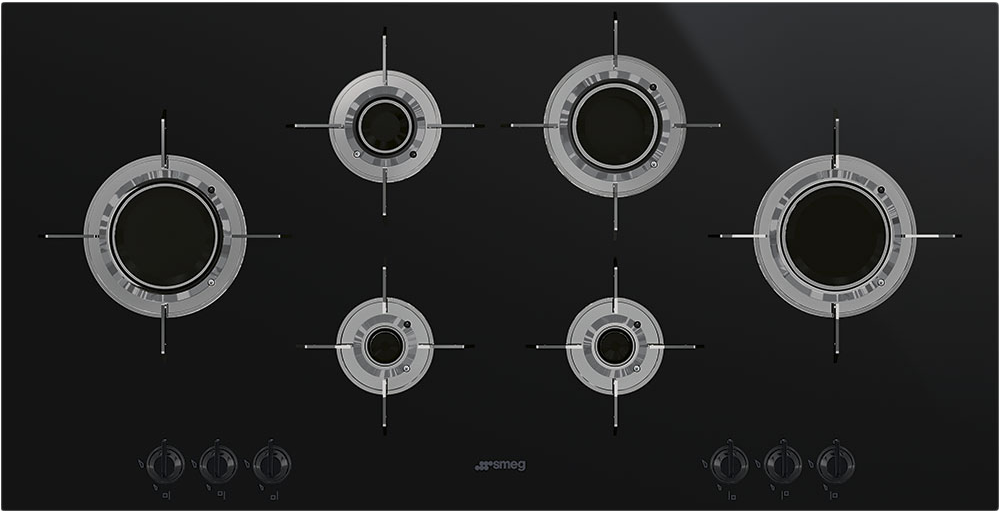 Варочная панель оснащена удобным управлением в виде черных поворотных переключателей. Рабочий стол включает 6 газовых горелок Blade (разной мощности). Есть автоматический электроподжиг всех конфорок, полный газ-контроль обеспечивает надежную защиту от утечек. К преимуществам прибора также можно отнести возможность подключения как к магистральному, так и к баллонному газу (жиклеры для перехода идут в комплекте). Практичная и стильная модель от бренда SMEG гармонично впишется в любой современный интерьер.