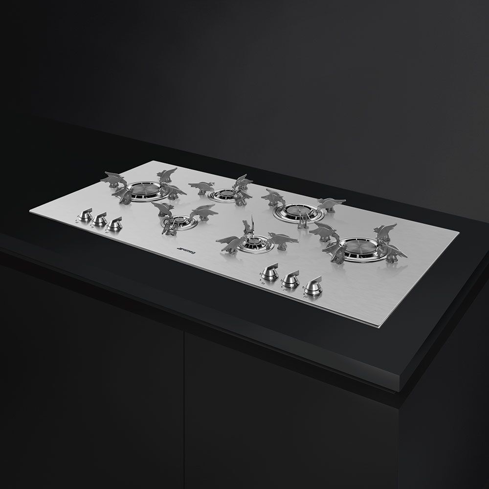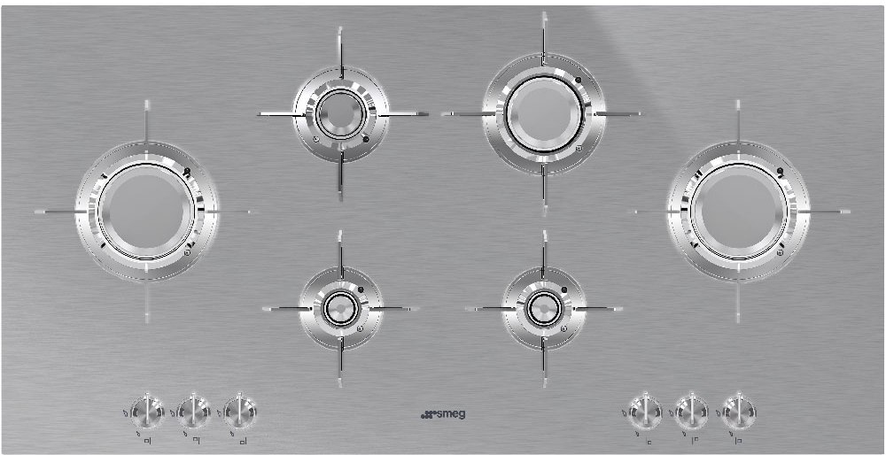 Варочная панель управляется при помощи эргономичных поворотных переключателей. Оснащение рабочей зоны шестью инновационными газовыми конфорками Blade разной мощности является конкурентным преимуществом модели. Новые плоские горелки с увеличенной на 20% производительностью обеспечивают максимально быстрый нагрев посуды. Устройство может эффективно функционировать от природного или сжиженного газа (жиклеры для подключения включены в комплектацию). Элегантная и практичная варочная поверхность SMEG отлично впишется в любой кухонный интерьер.