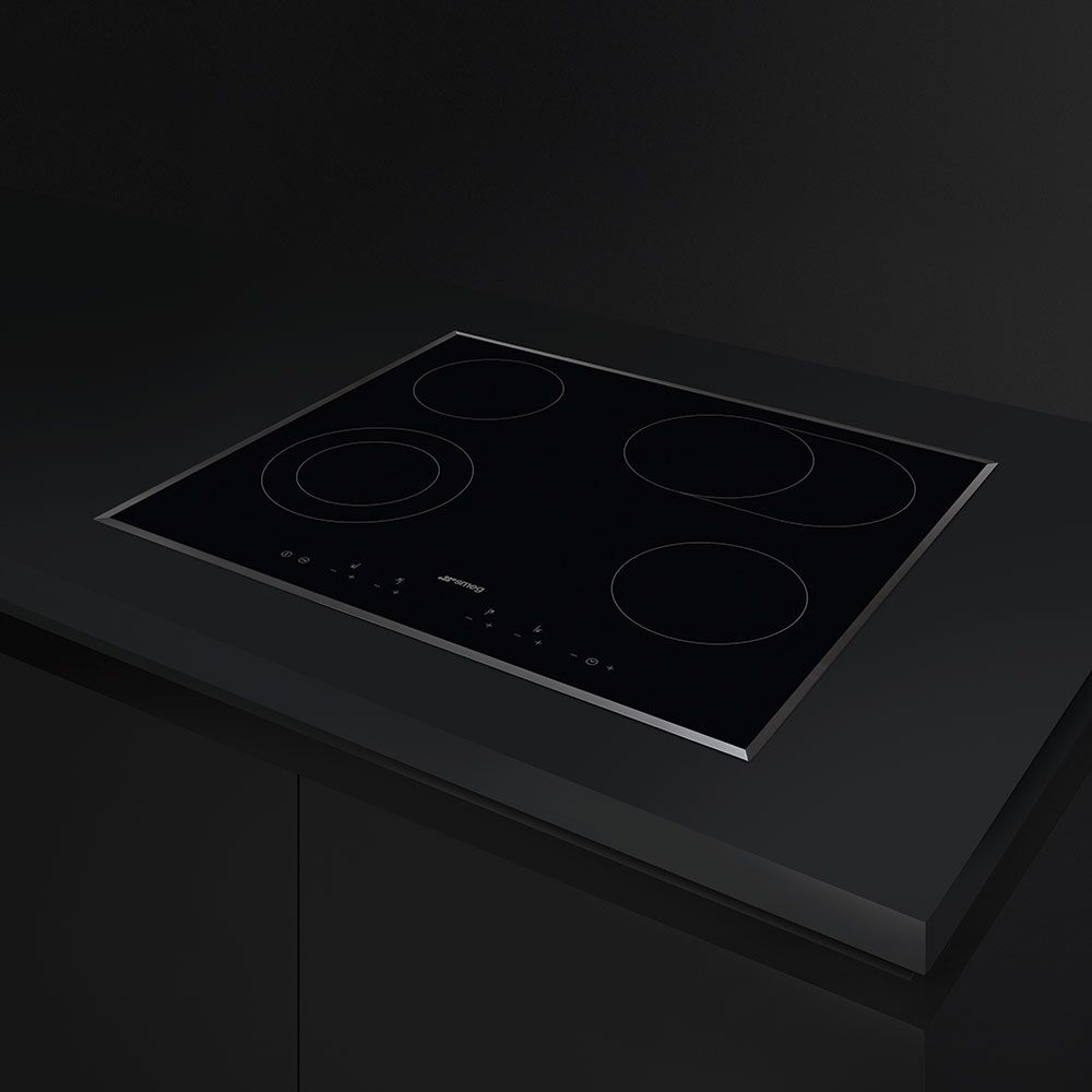 Электрическая варочная панель черного цвета изготовлена из стеклокерамики Suprema, которая обеспечивает отличную теплопередачу, не боится сильных ударов и высоких температур. Поверхность для готовки имеет 4 зоны нагрева Hi-Light, которые нагреваются за несколько секунд. Конфорки оснащены 9-ступенчатой регулировкой мощности, значения которой отображаются на цифровом индикаторе.