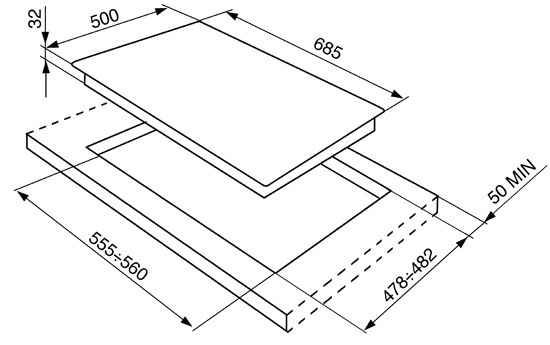 - Ширина шкафа для встраивания 60 см
