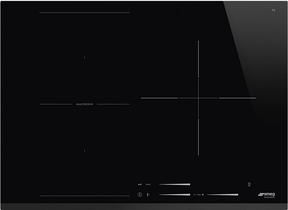 Независимая индукционная варочная поверхность на 3 конфорки отличается ультранизким профилем, фронтальный край скошенный. Модель черного цвета из основной линейки бренда SMEG имеет изысканный дизайн, она производится из высококачественных и безопасных материалов. Индукционная зона нагрева Multizone поддерживают функцию определения диаметра посуды, что дает возможность пользоваться нестандартной кухонной утварью в процессе готовки. Каждая конфорка оборудована настраиваемым таймером окончания приготовления со звуковым сигналом.
