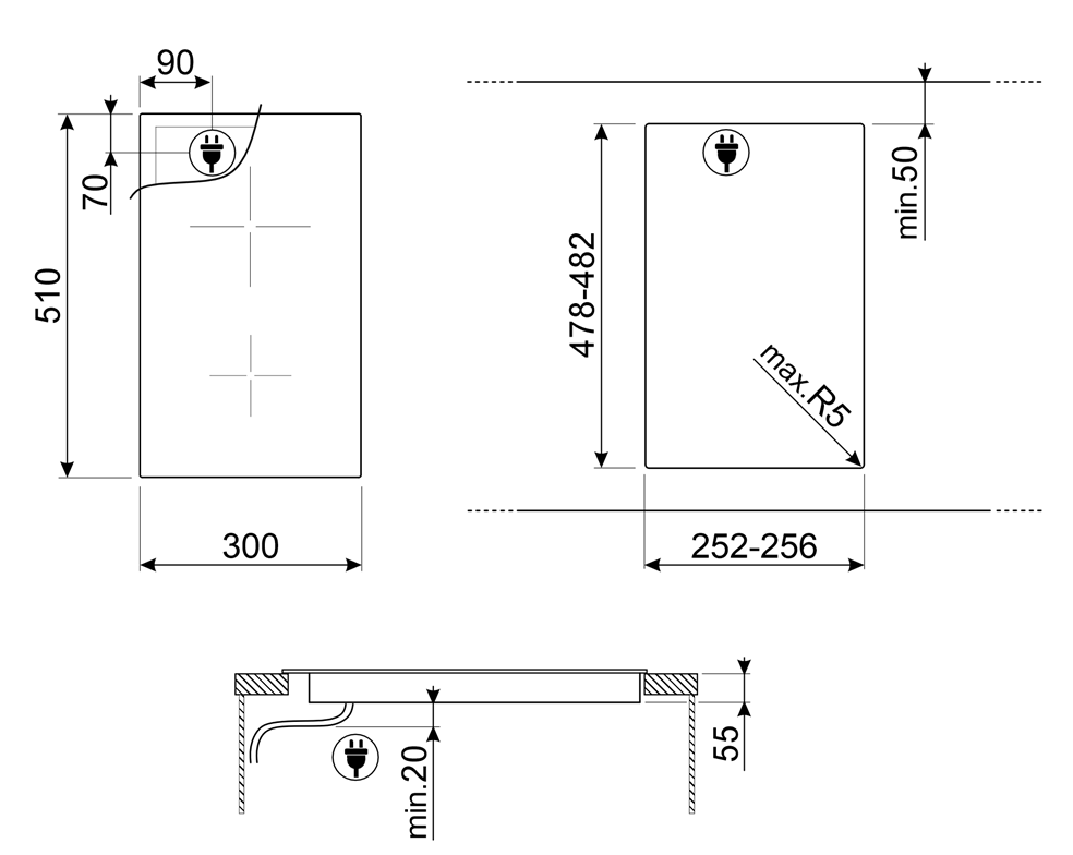 Стандартный вырез: 478-482x252-256 мм