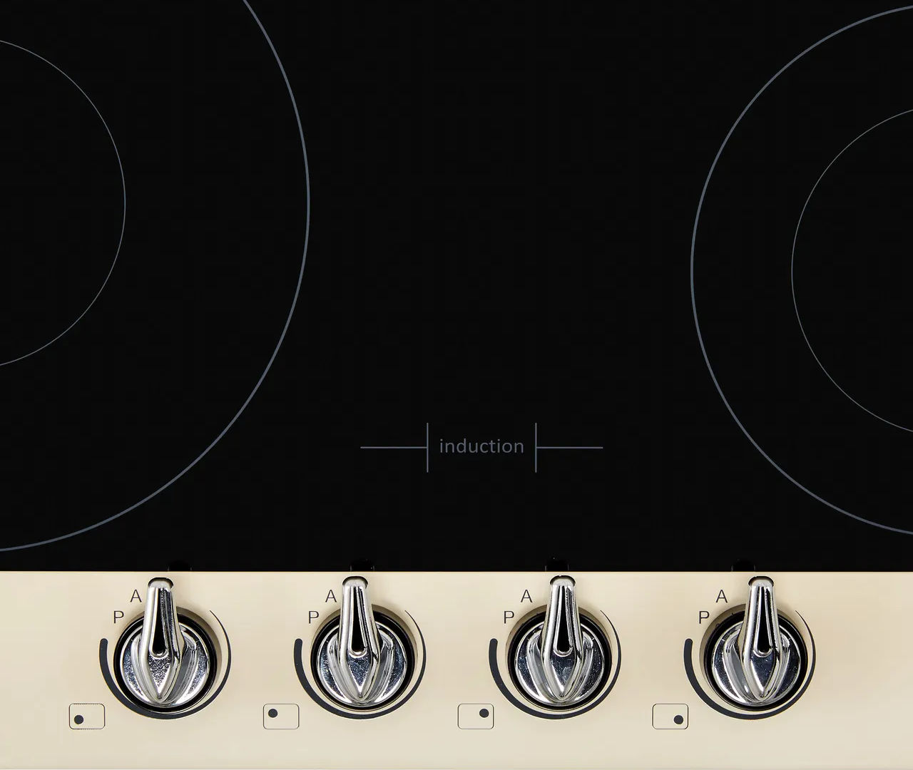 Независимая индукционная варочная панель на 4 конфорки из дизайнерской серии Victoria от SMEG. Модель с черным стеклокерамическим покрытием и рамой кремового цвета отличается изысканным дизайном. Прибор проектируется и изготавливается в Италии из высококачественных и экологически чистых материалов. Стеклокерамика обладает устойчивостью к перепадам температуры и механическим воздействиям, с гладкой поверхности изделия легко удаляются загрязнения. Индикация остаточного тепла эффективно предотвращает ожоги, автоматика закипания облегчает контроль за приготовлением пищи.
