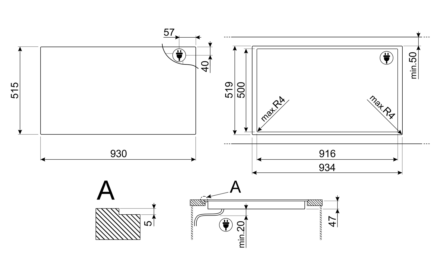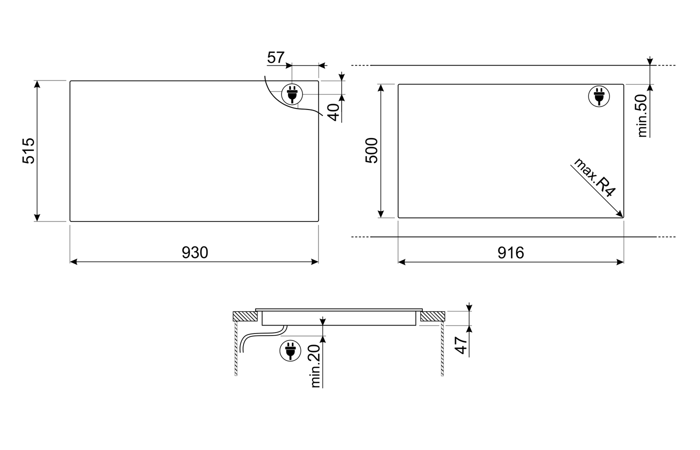 Стандартный вырез 500-916 мм