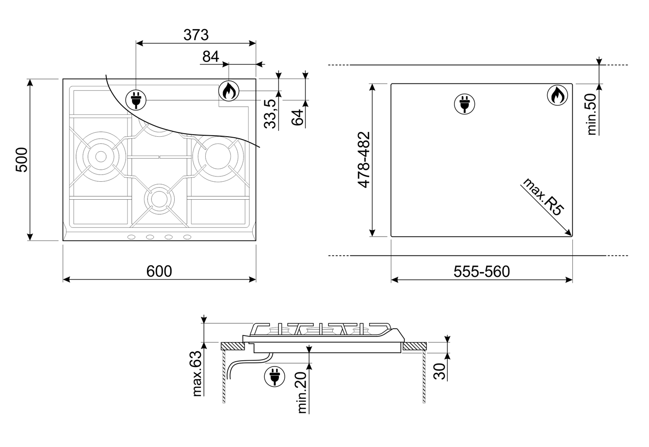 Стандартный вырез: 478-482x555-560 мм