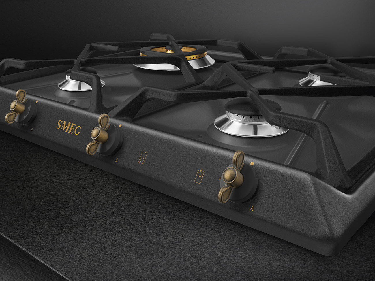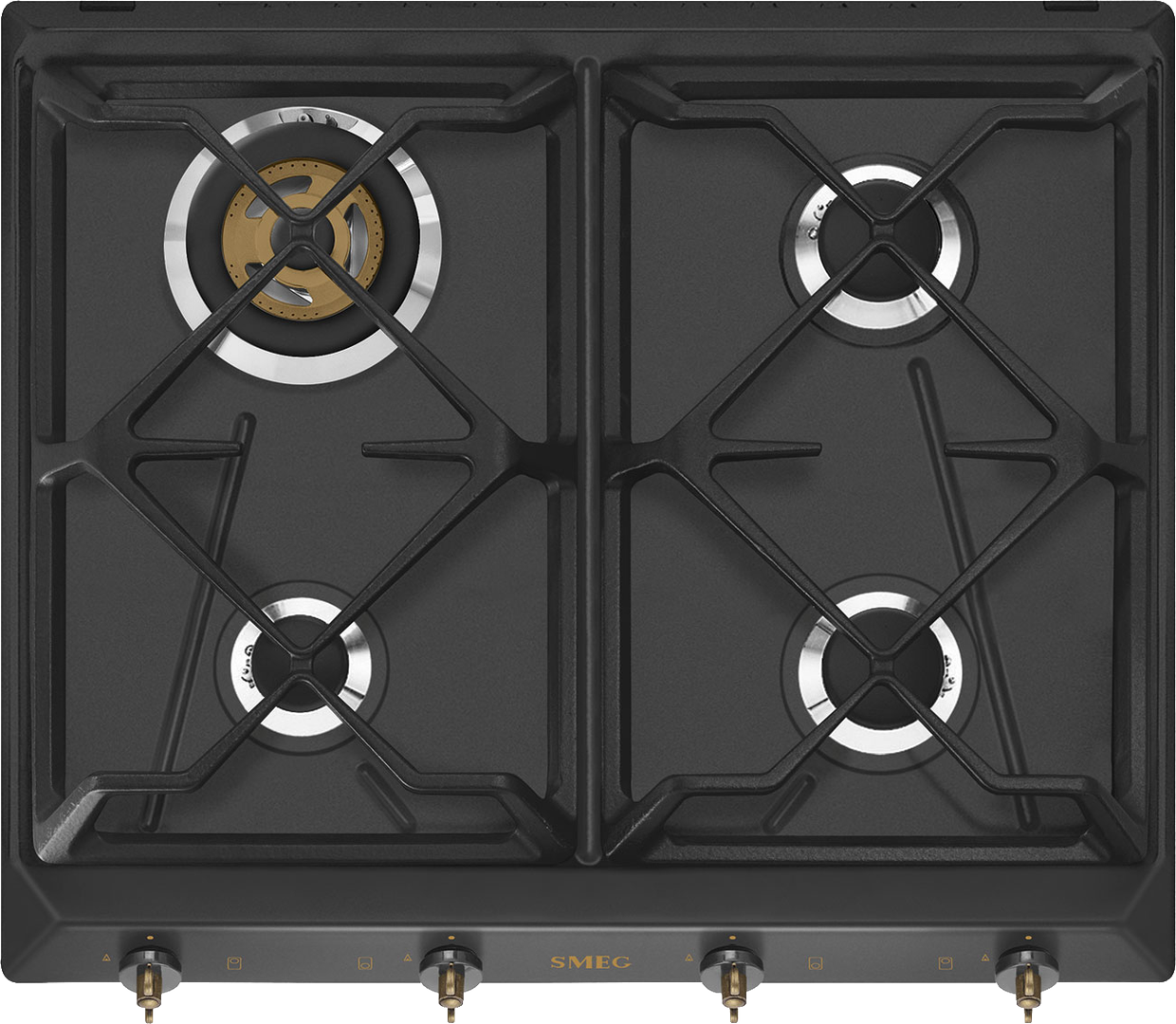 Эта газовая варочная панель представляет собой отличное сочетание функциональности, практичности и изысканного итальянского дизайна. Привлекательный цвет «антрацит» и латунная фурнитура будут отлично смотреться как в классическом, так и в более современном кухонном интерьере. Модель оснащается тремя конфорками различного диаметра и четвёртой, сверхмощной конфоркой WOK. К преимуществам газовой панели можно также отнести простоту в обслуживании и уходе за счет специальной жаропрочной эмали легкой очистки и современной разборной конструкции конфорок. Четыре поворотных регулятора обеспечивают гибкие возможности в регулировке мощности горелок в зависимости от поставленной задачи.