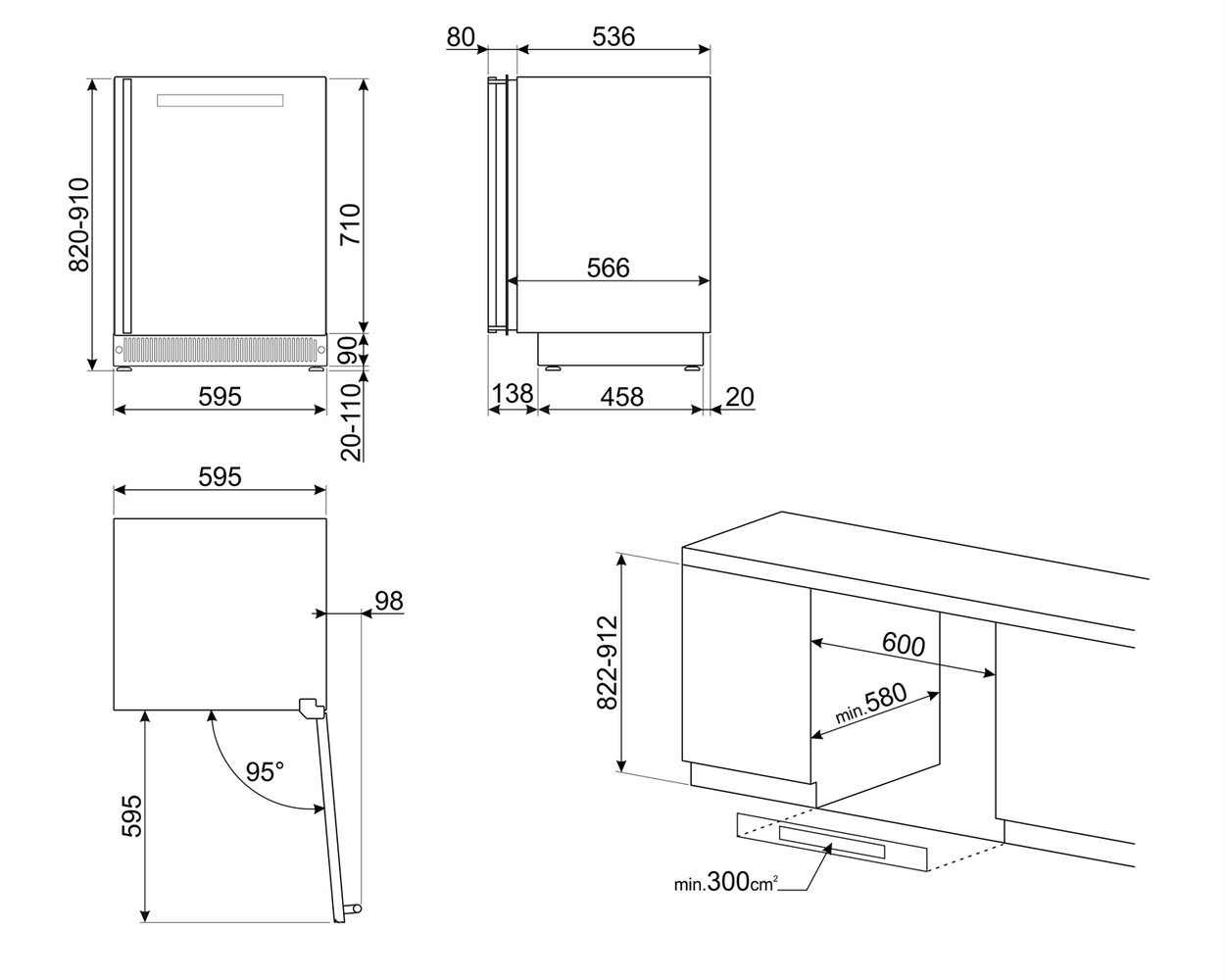 Ширина с дверцей, открытой на 90° (мм) 693 мм
