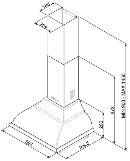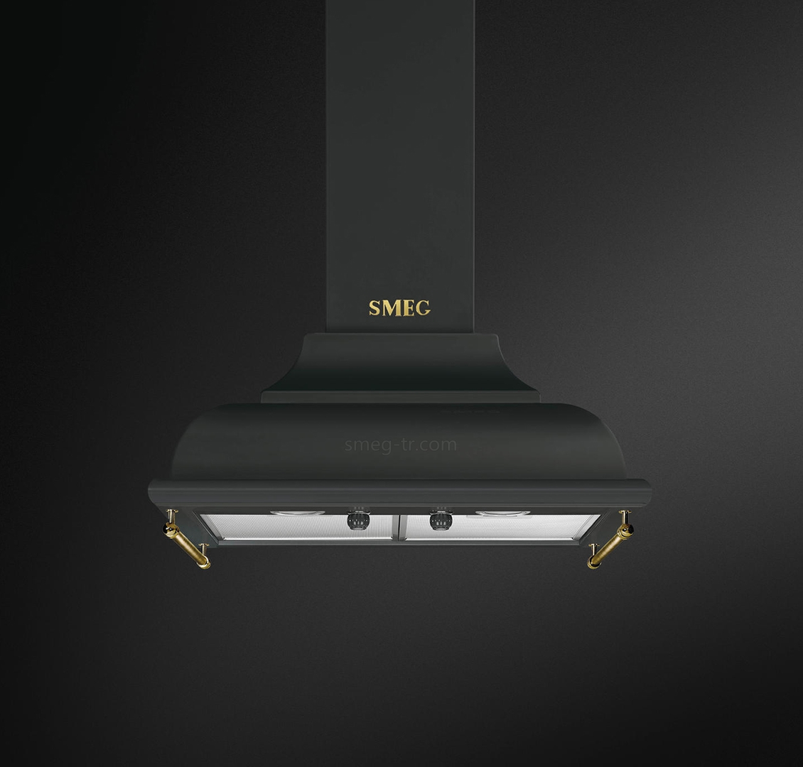 Эта модель итальянской сборки отличается высокой производительностью (788 м3/час) и эксклюзивным дизайном в стиле кантри. Кухонная вытяжка черного цвета (антрацит) с латунной фурнитурой и логотипом SMEG изготовлена из высококачественных и безопасных материалов. Предусмотрена настенная установка над варочной панелью или плитой, диаметр воздуховода для подключения вентиляции - 150 мм. Устройство поддерживает 3 скорости очистки воздуха и специальный интенсивный режим работы. Две LED-лампы по 2 Вт формируют яркую подсветку рабочей зоны.