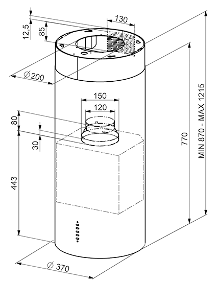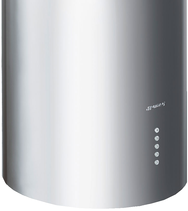 Эта великолепная модель из основной линейки Smeg имеет красивый цилиндрический корпус диаметром 37 и высотой 87 см. Блестящая островная вытяжка из нержавеющей стали хорошо впишется в кухни, интерьер которых относится к стилю лофт или хай-тек. Модель крепится к потолку, так что монтаж лучше доверить профессионалам.