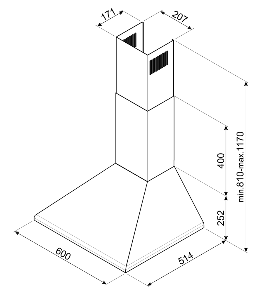 Популярная пристенная модель каминного типа пользуется спросом у владельцев классических кухонь. Ее ширина – 60 см, поэтому вытяжка подходит для большинства стандартных варочных панелей. Для очистки воздуха предназначены три скорости. Производительность составляет 593 кубометра в час – этого достаточно даже для просторной кухни.