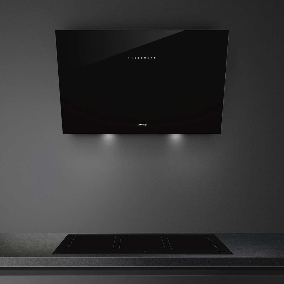 Наклонная вытяжка черного цвета отличается элегантным дизайном и высокой производительностью (до 730 м3/час). Модель итальянской сборки сделана из долговечных и экологически чистых материалов. Предусмотрен настенный монтаж над варочной панелью, минимальное расстояние до газовых конфорок составляет 650 мм, до электрических или индукционных — 450 мм. В данном воздухоочистителе реализована уникальная технология периметрального всасывания, обеспечивающая высокий КПД при минимальном потреблении электроэнергии. Есть яркая и экономичная светодиодная подсветка.